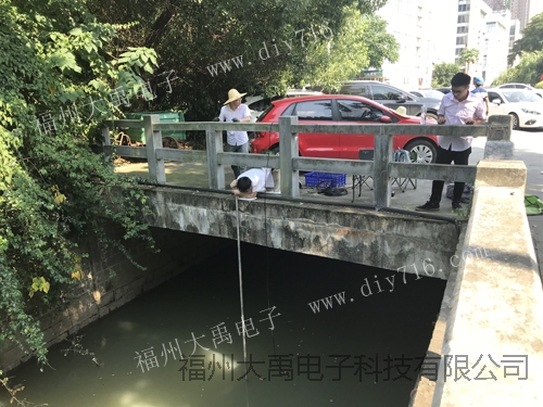 6月28日,大禹電子工程師們來到福州金山橘園州工業區里面的內河,進行單波束聲學多普勒流速剖面儀的測量試驗。