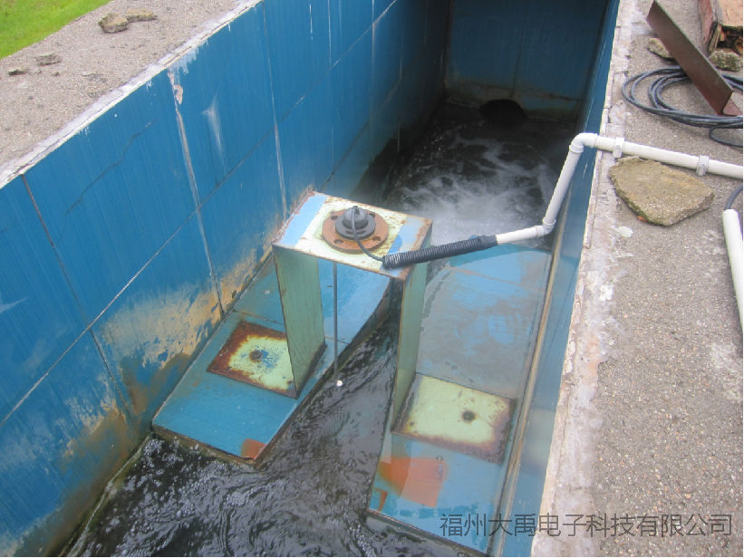 成都郫都區團結鎮污水處理廠,超聲波液位差計現場